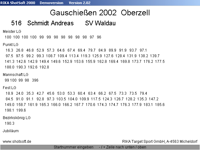 | Überzeugen Sie sich von 40 Jahren Erfahrung mit Wettkampfauswertung im Schießsport! | Aktualisiert: 27. Januar 2023 |